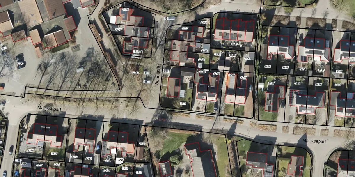 Gebruik de zoekbalk of klik op een perceel voor informatie over de adressen binnen dit perceel.