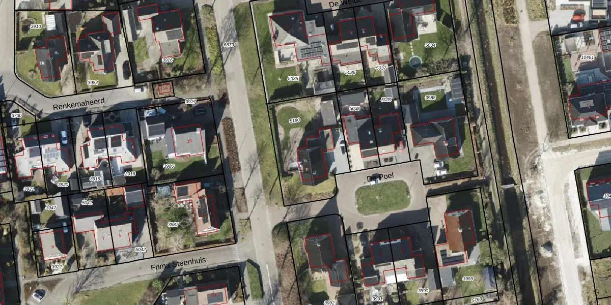 Het perceel waarop De Poel 2 staat heeft een oppervlakte van 748 m². Dit is een groot perceel. De perceeloppervlakte wordt geregistreerd door het Kadaster. Gedetailleerde informatie over de maten van dit perceel kunt u vinden in het rapport Kadastrale kaart met maatvoering van De Poel 2.