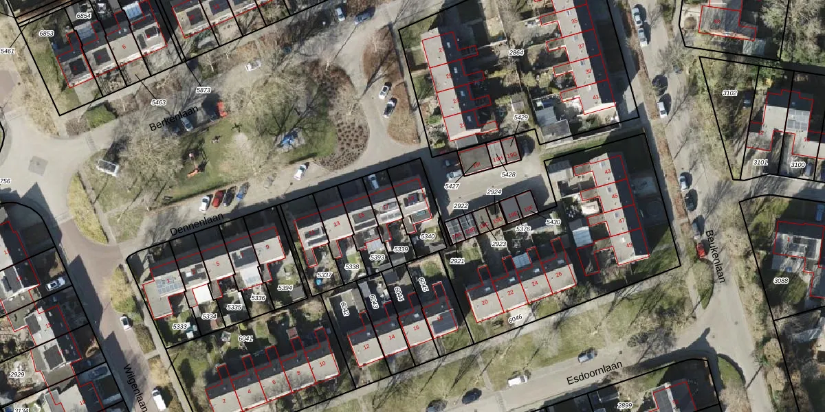Gebruik de zoekbalk of klik op een perceel voor informatie over de adressen binnen dit perceel.