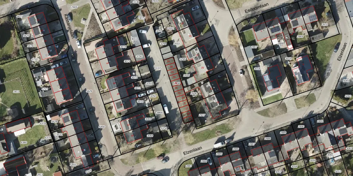 Elzenlaan 2-F is gelegen op kadastraal perceel MRM01F2938. Deze kadastrale aanduiding is uniek en wordt gebruikt door het Kadaster om eigendomsrechten en andere zakelijke rechten vast te leggen. Het perceel maakt onderdeel uit van de kadastrale gemeente Marum.