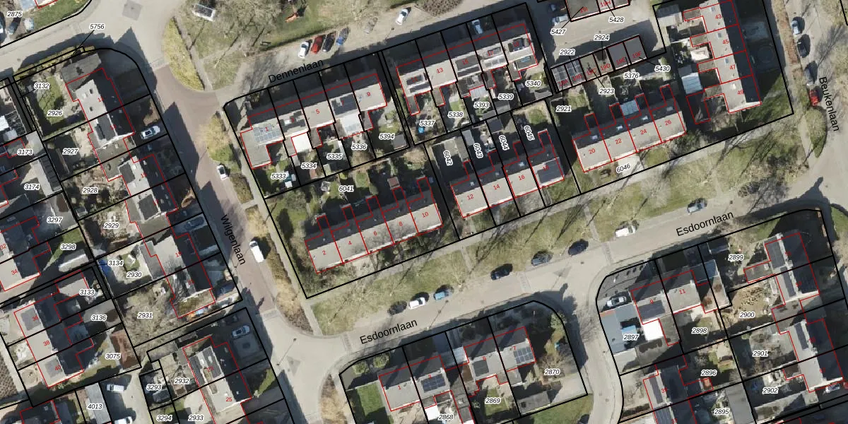 Esdoornlaan 10 is gelegen op kadastraal perceel MRM01F6041. Deze kadastrale aanduiding is uniek en wordt gebruikt door het Kadaster om eigendomsrechten en andere zakelijke rechten vast te leggen. Het perceel maakt onderdeel uit van de kadastrale gemeente Marum.