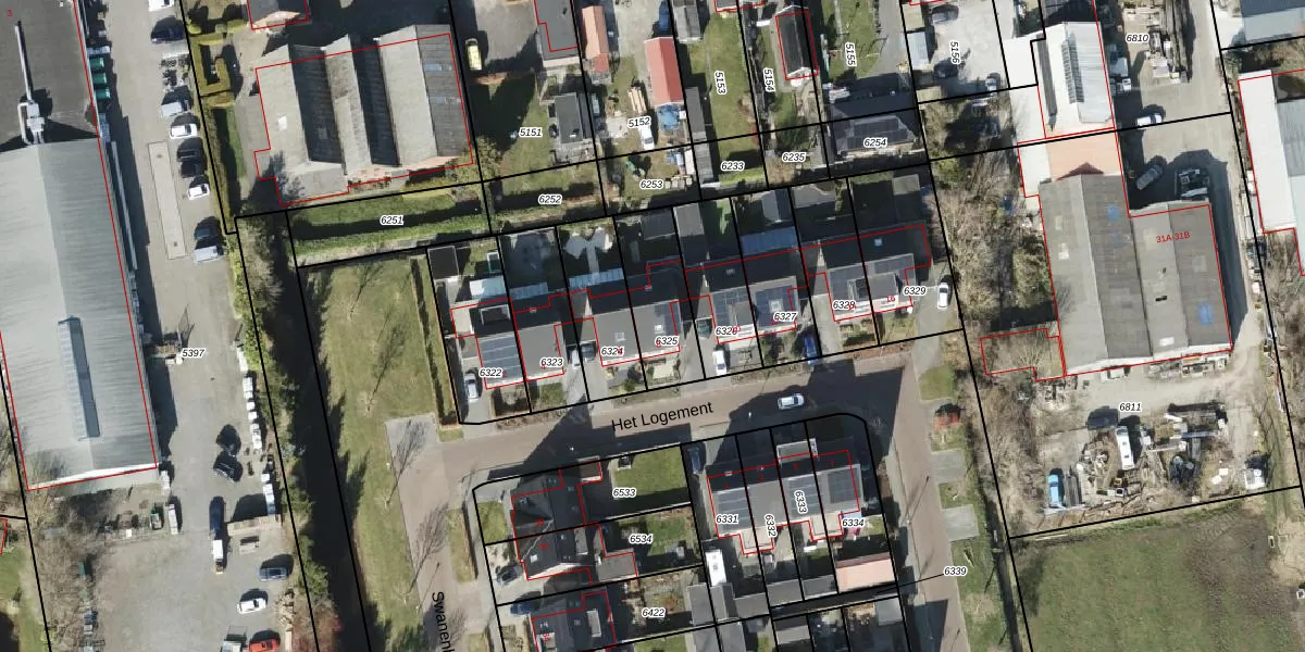Gebruik de zoekbalk of klik op een perceel voor informatie over de adressen binnen dit perceel.