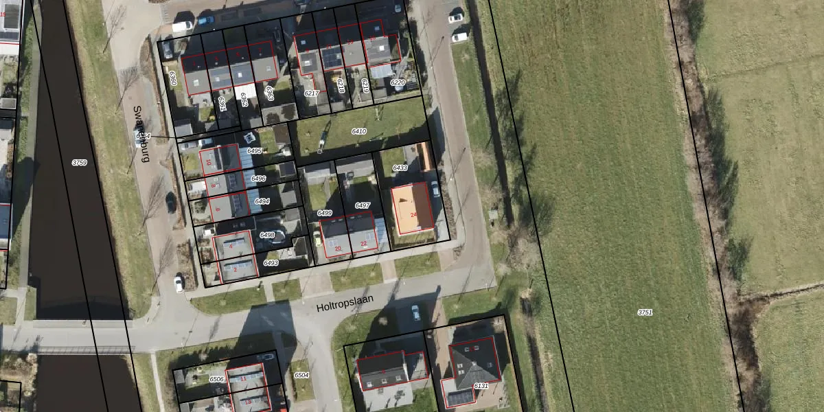 Holtropslaan 24 is gelegen op kadastraal perceel MRM01F6433. Deze kadastrale aanduiding is uniek en wordt gebruikt door het Kadaster om eigendomsrechten en andere zakelijke rechten vast te leggen. Het perceel maakt onderdeel uit van de kadastrale gemeente Marum.