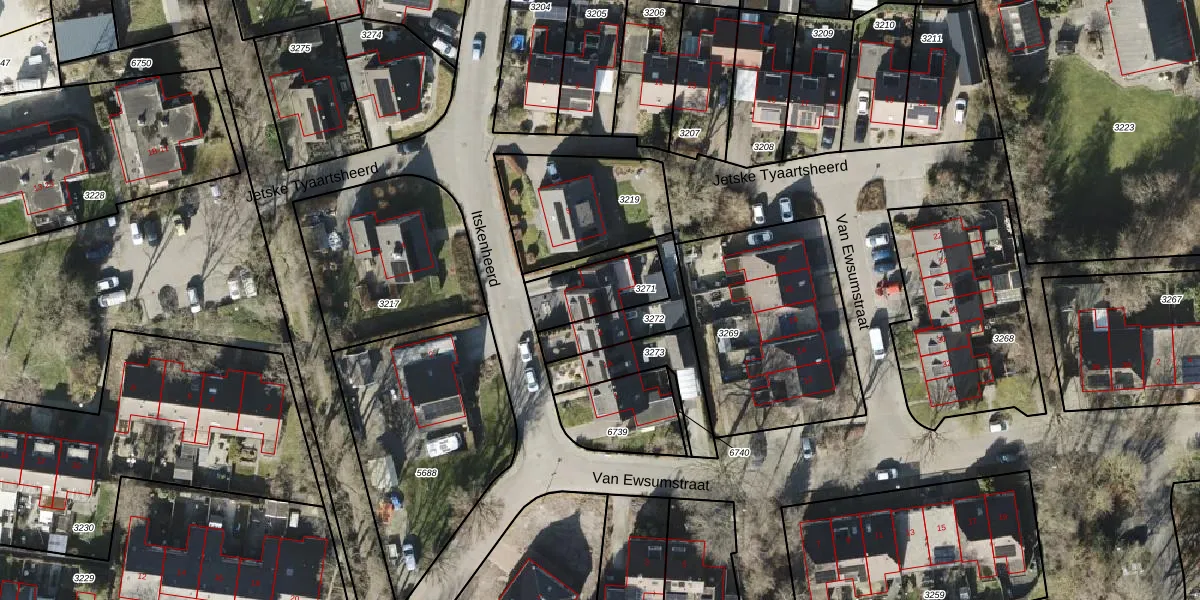 Gebruik de zoekbalk of klik op een perceel voor informatie over de adressen binnen dit perceel.