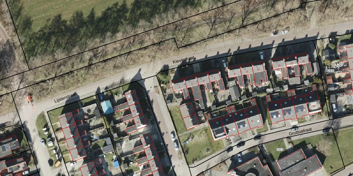 Het perceel waarop Kievitstraat 1 staat heeft een oppervlakte van 4370 m². Dit is een zeer groot perceel. De perceeloppervlakte wordt geregistreerd door het Kadaster. Gedetailleerde informatie over de maten van dit perceel kunt u vinden in het rapport Kadastrale kaart met maatvoering van Kievitstraat 1.