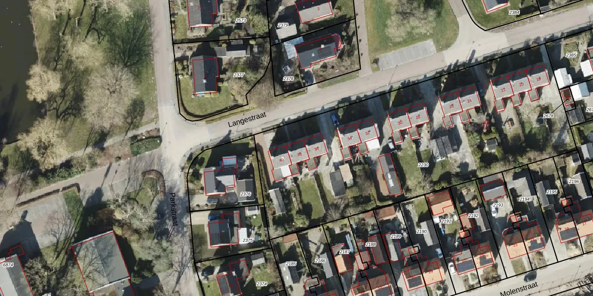 Het perceel waarop Langestraat 38 staat heeft een oppervlakte van 3860 m². Dit is een zeer groot perceel. De perceeloppervlakte wordt geregistreerd door het Kadaster. Gedetailleerde informatie over de maten van dit perceel kunt u vinden in het rapport Kadastrale kaart met maatvoering van Langestraat 38.
