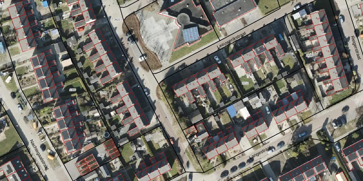 Het perceel waarop Leeuwerikstraat 1 staat heeft een oppervlakte van 2340 m². Dit is een zeer groot perceel. De perceeloppervlakte wordt geregistreerd door het Kadaster. Gedetailleerde informatie over de maten van dit perceel kunt u vinden in het rapport Kadastrale kaart met maatvoering van Leeuwerikstraat 1.