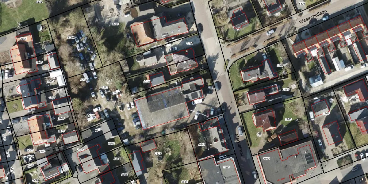 Het perceel waarop Marktstraat 6 staat heeft een oppervlakte van 2215 m². Dit is een zeer groot perceel. De perceeloppervlakte wordt geregistreerd door het Kadaster. Gedetailleerde informatie over de maten van dit perceel kunt u vinden in het rapport Kadastrale kaart met maatvoering van Marktstraat 6.