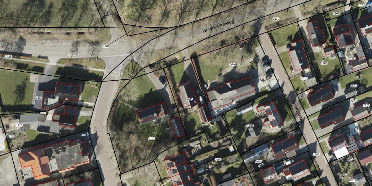 Het perceel waarop Noorderringweg 34 staat heeft een oppervlakte van 735 m². Dit is een groot perceel. De perceeloppervlakte wordt geregistreerd door het Kadaster. Gedetailleerde informatie over de maten van dit perceel kunt u vinden in het rapport Kadastrale kaart met maatvoering van Noorderringweg 34.