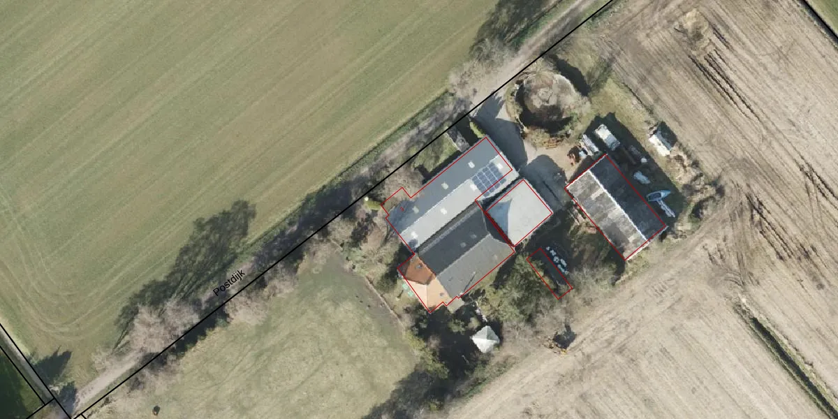 Het perceel waarop Postdijk 3 staat heeft een oppervlakte van 4,3 ha. Dit is een zeer groot perceel. De perceeloppervlakte wordt geregistreerd door het Kadaster. Gedetailleerde informatie over de maten van dit perceel kunt u vinden in het rapport Kadastrale kaart met maatvoering van Postdijk 3.