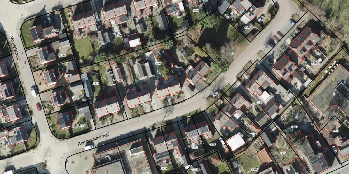 Het perceel waarop Rembrandtstraat 12 staat heeft een oppervlakte van 1900 m². Dit is een zeer groot perceel. De perceeloppervlakte wordt geregistreerd door het Kadaster. Gedetailleerde informatie over de maten van dit perceel kunt u vinden in het rapport Kadastrale kaart met maatvoering van Rembrandtstraat 12.