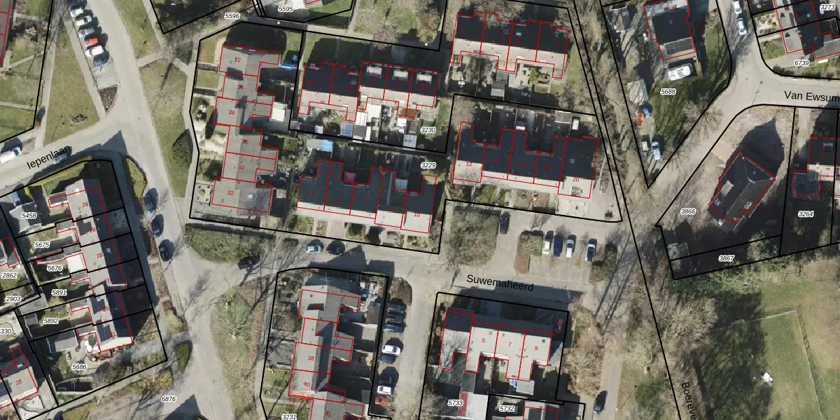 Het perceel waarop Suwemaheerd 10 staat heeft een oppervlakte van 2958 m². Dit is een zeer groot perceel. De perceeloppervlakte wordt geregistreerd door het Kadaster. Gedetailleerde informatie over de maten van dit perceel kunt u vinden in het rapport Kadastrale kaart met maatvoering van Suwemaheerd 10.
