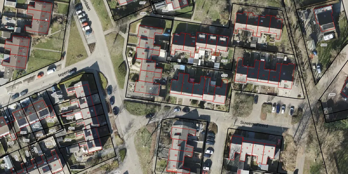 Het perceel waarop Suwemaheerd 2 staat heeft een oppervlakte van 2958 m². Dit is een zeer groot perceel. De perceeloppervlakte wordt geregistreerd door het Kadaster. Gedetailleerde informatie over de maten van dit perceel kunt u vinden in het rapport Kadastrale kaart met maatvoering van Suwemaheerd 2.