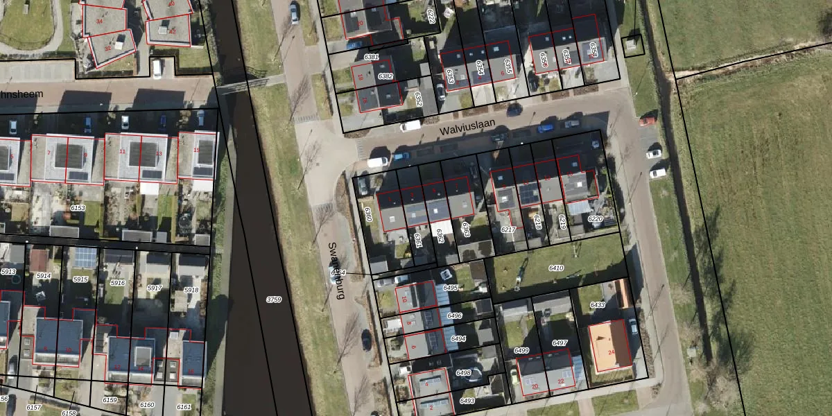 Gebruik de zoekbalk of klik op een perceel voor informatie over de adressen binnen dit perceel.