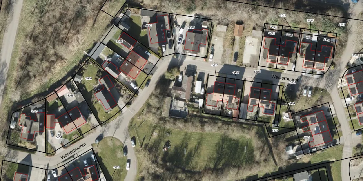 Het perceel waarop Westerbuuren 12 staat heeft een oppervlakte van 3,7 ha. Dit is een zeer groot perceel. De perceeloppervlakte wordt geregistreerd door het Kadaster. Gedetailleerde informatie over de maten van dit perceel kunt u vinden in het rapport Kadastrale kaart met maatvoering van Westerbuuren 12.