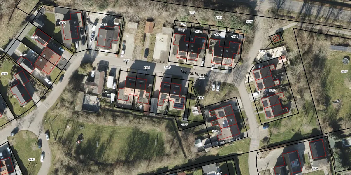 Gebruik de zoekbalk of klik op een perceel voor informatie over de adressen binnen dit perceel.