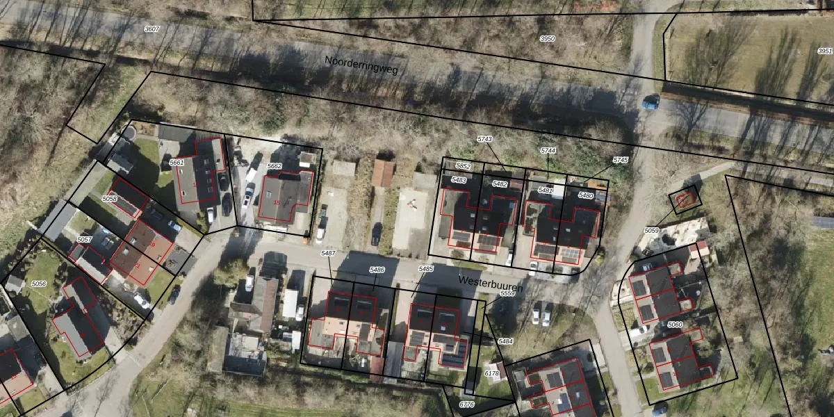 Het perceel waarop Westerbuuren 9 staat heeft een oppervlakte van 3,7 ha. Dit is een zeer groot perceel. De perceeloppervlakte wordt geregistreerd door het Kadaster. Gedetailleerde informatie over de maten van dit perceel kunt u vinden in het rapport Kadastrale kaart met maatvoering van Westerbuuren 9.