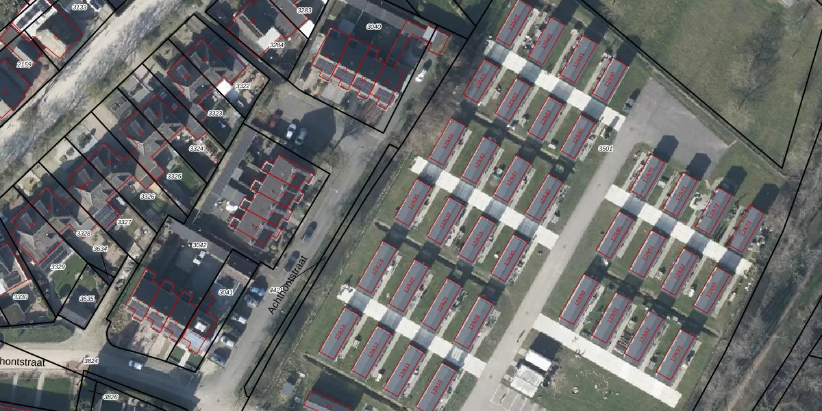 Het perceel waarop Achthontstraat 12-k33 staat heeft een oppervlakte van 1,3 ha. Dit is een zeer groot perceel. De perceeloppervlakte wordt geregistreerd door het Kadaster. Gedetailleerde informatie over de maten van dit perceel kunt u vinden in het rapport Kadastrale kaart met maatvoering van Achthontstraat 12-k33.