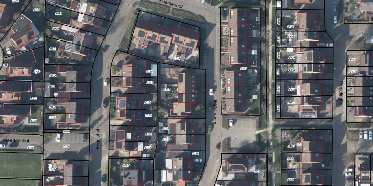 Het perceel waarop Bloemeehof 14 staat heeft een oppervlakte van 723 m². Dit is een groot perceel. De perceeloppervlakte wordt geregistreerd door het Kadaster. Gedetailleerde informatie over de maten van dit perceel kunt u vinden in het rapport Kadastrale kaart met maatvoering van Bloemeehof 14.