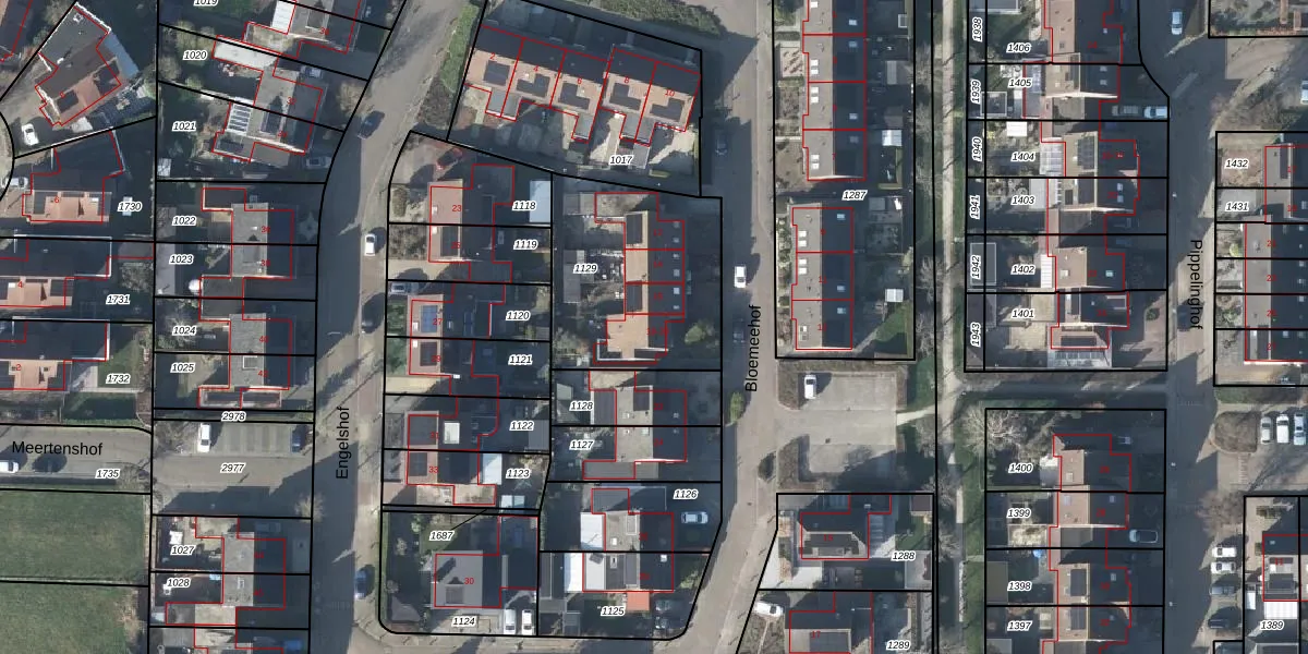 Het perceel waarop Bloemeehof 18 staat heeft een oppervlakte van 723 m². Dit is een groot perceel. De perceeloppervlakte wordt geregistreerd door het Kadaster. Gedetailleerde informatie over de maten van dit perceel kunt u vinden in het rapport Kadastrale kaart met maatvoering van Bloemeehof 18.