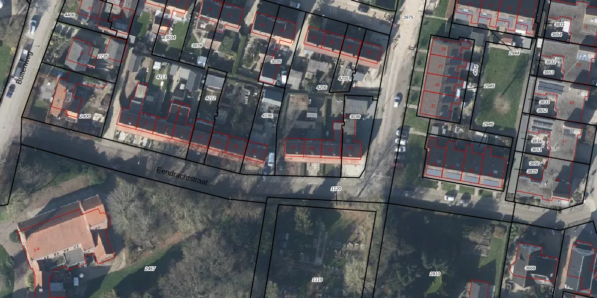 Het perceel waarop Eendrachtstraat 17 staat heeft een oppervlakte van 1204 m². Dit is een zeer groot perceel. De perceeloppervlakte wordt geregistreerd door het Kadaster. Gedetailleerde informatie over de maten van dit perceel kunt u vinden in het rapport Kadastrale kaart met maatvoering van Eendrachtstraat 17.
