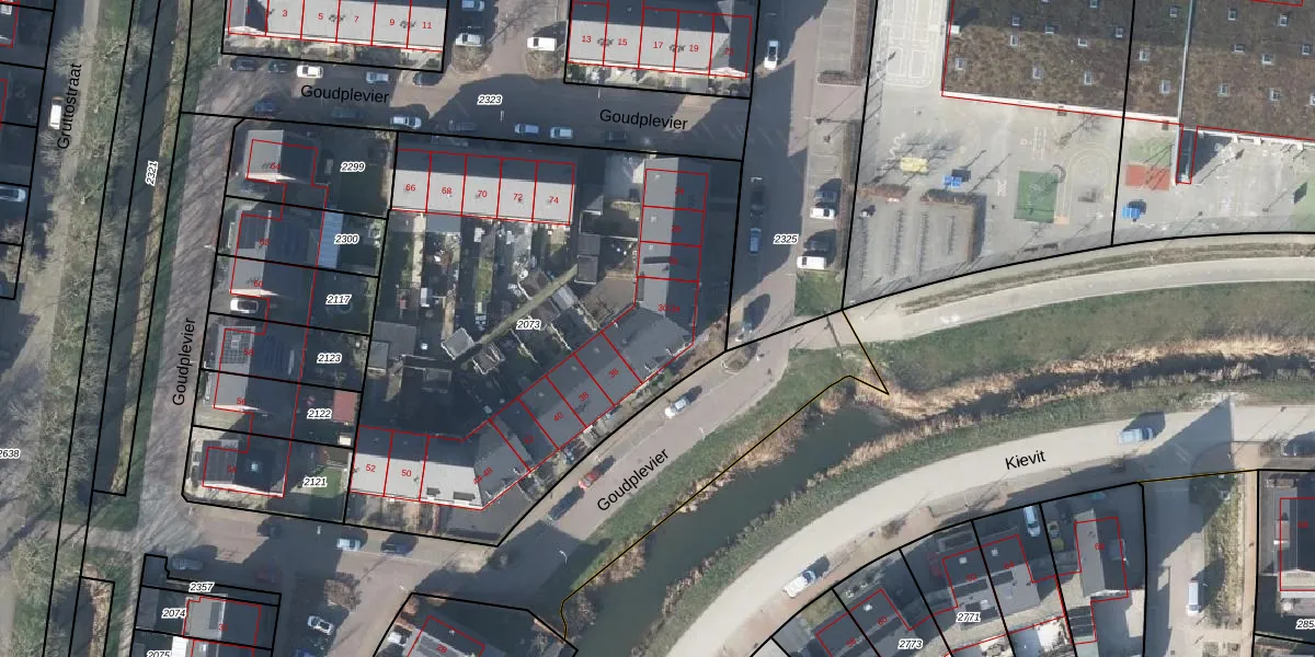 Het perceel waarop Goudplevier 32 staat heeft een oppervlakte van 2686 m². Dit is een zeer groot perceel. De perceeloppervlakte wordt geregistreerd door het Kadaster. Gedetailleerde informatie over de maten van dit perceel kunt u vinden in het rapport Kadastrale kaart met maatvoering van Goudplevier 32.