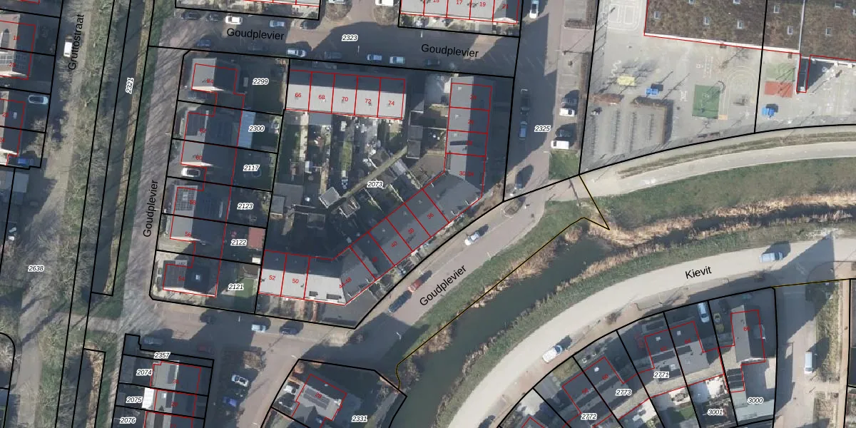Het perceel waarop Goudplevier 36 staat heeft een oppervlakte van 2686 m². Dit is een zeer groot perceel. De perceeloppervlakte wordt geregistreerd door het Kadaster. Gedetailleerde informatie over de maten van dit perceel kunt u vinden in het rapport Kadastrale kaart met maatvoering van Goudplevier 36.