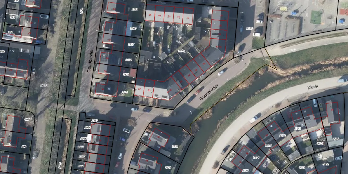 Goudplevier 44 is gelegen op kadastraal perceel MRK01L2073. Deze kadastrale aanduiding is uniek en wordt gebruikt door het Kadaster om eigendomsrechten en andere zakelijke rechten vast te leggen. Het perceel maakt onderdeel uit van de kadastrale gemeente Maurik.