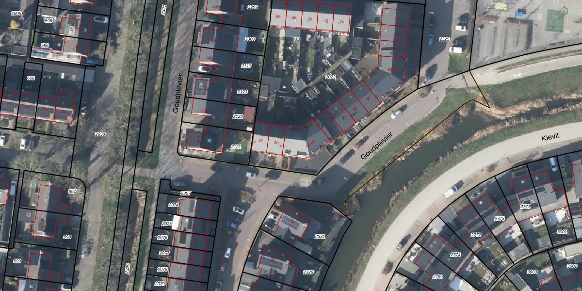 Het perceel waarop Goudplevier 48 staat heeft een oppervlakte van 2686 m². Dit is een zeer groot perceel. De perceeloppervlakte wordt geregistreerd door het Kadaster. Gedetailleerde informatie over de maten van dit perceel kunt u vinden in het rapport Kadastrale kaart met maatvoering van Goudplevier 48.