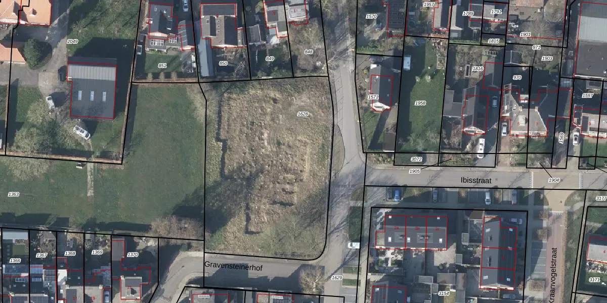 Het perceel waarop Gravensteinerhof 37 staat heeft een oppervlakte van 2416 m². Dit is een zeer groot perceel. De perceeloppervlakte wordt geregistreerd door het Kadaster. Gedetailleerde informatie over de maten van dit perceel kunt u vinden in het rapport Kadastrale kaart met maatvoering van Gravensteinerhof 37.
