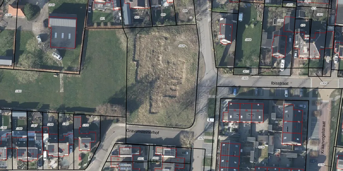 Het perceel waarop Gravensteinerhof 57 staat heeft een oppervlakte van 2416 m². Dit is een zeer groot perceel. De perceeloppervlakte wordt geregistreerd door het Kadaster. Gedetailleerde informatie over de maten van dit perceel kunt u vinden in het rapport Kadastrale kaart met maatvoering van Gravensteinerhof 57.
