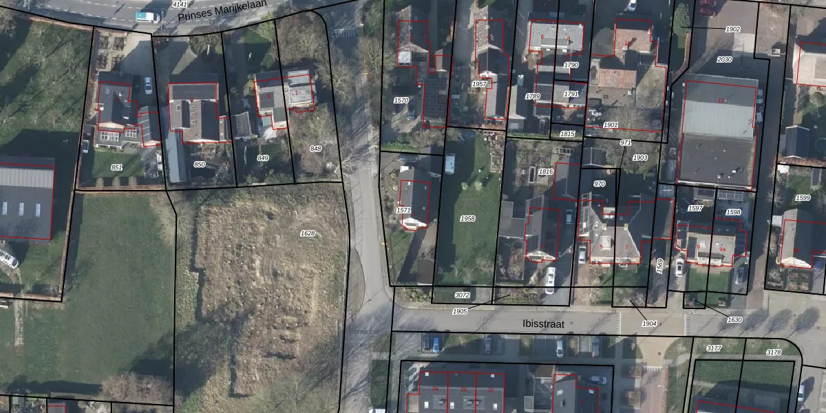 Het perceel waarop Ibisstraat 1 staat heeft een oppervlakte van 425 m². Dit is een groot perceel. De perceeloppervlakte wordt geregistreerd door het Kadaster. Gedetailleerde informatie over de maten van dit perceel kunt u vinden in het rapport Kadastrale kaart met maatvoering van Ibisstraat 1.