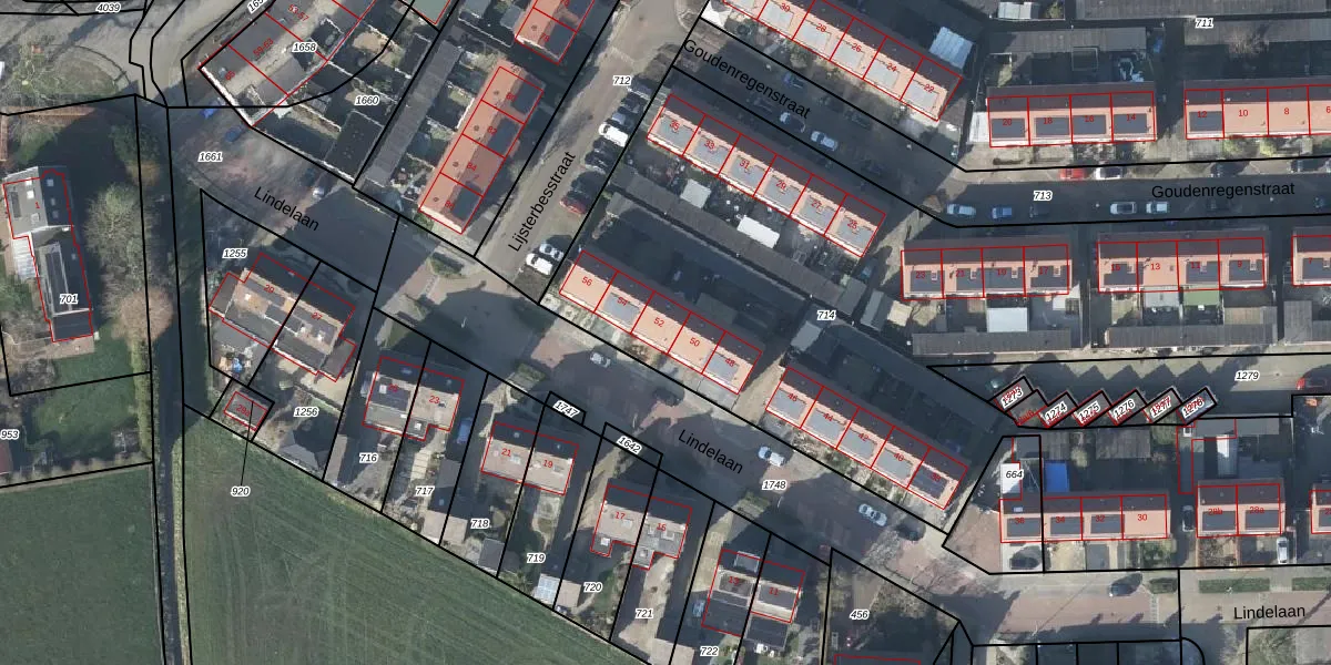 Het perceel waarop Lindelaan 52 staat heeft een oppervlakte van 6570 m². Dit is een zeer groot perceel. De perceeloppervlakte wordt geregistreerd door het Kadaster. Gedetailleerde informatie over de maten van dit perceel kunt u vinden in het rapport Kadastrale kaart met maatvoering van Lindelaan 52.