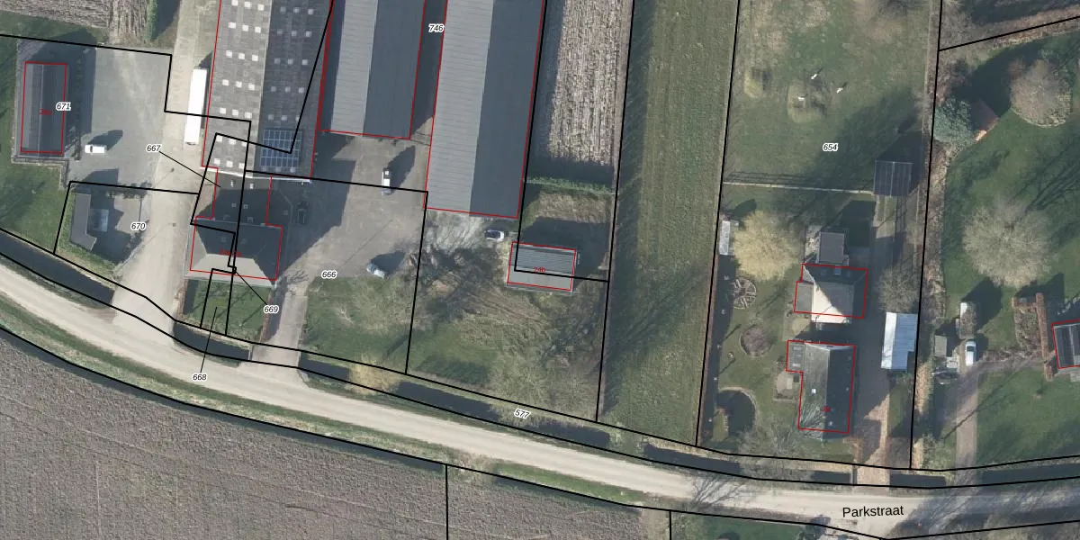 Het perceel waarop Parkstraat 24-b staat heeft een oppervlakte van 2,0 ha. Dit is een zeer groot perceel. De perceeloppervlakte wordt geregistreerd door het Kadaster. Gedetailleerde informatie over de maten van dit perceel kunt u vinden in het rapport Kadastrale kaart met maatvoering van Parkstraat 24-b.