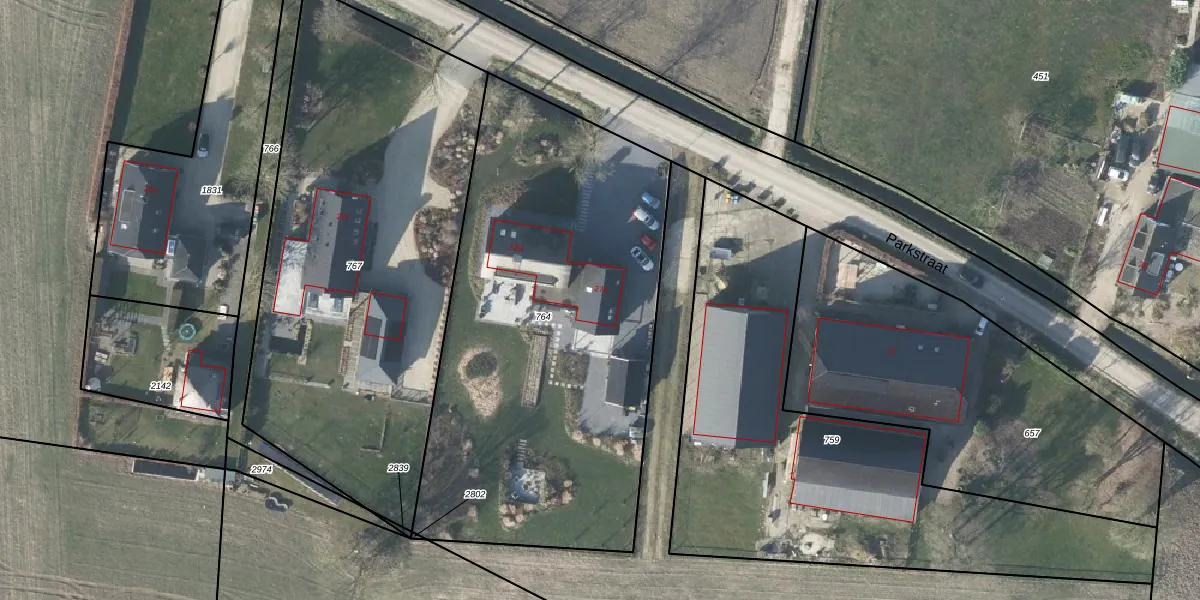 Het perceel waarop Parkstraat 27-e staat heeft een oppervlakte van 2498 m². Dit is een zeer groot perceel. De perceeloppervlakte wordt geregistreerd door het Kadaster. Gedetailleerde informatie over de maten van dit perceel kunt u vinden in het rapport Kadastrale kaart met maatvoering van Parkstraat 27-e.