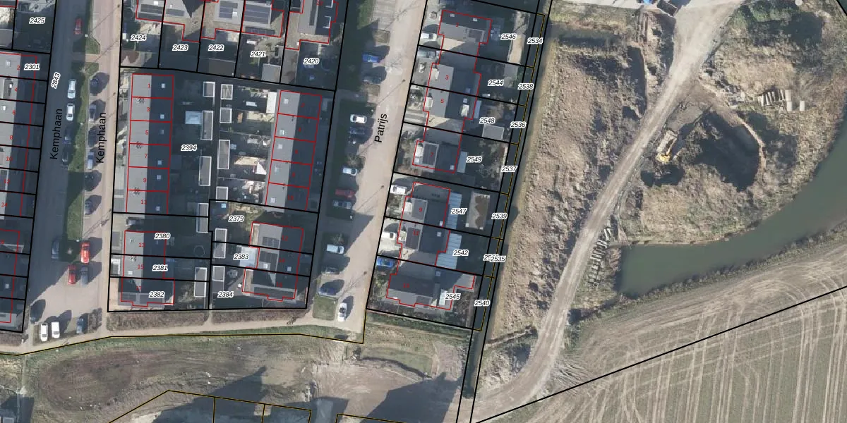 Patrijs 9 is gelegen op kadastraal perceel MRK01L2547. Deze kadastrale aanduiding is uniek en wordt gebruikt door het Kadaster om eigendomsrechten en andere zakelijke rechten vast te leggen. Het perceel maakt onderdeel uit van de kadastrale gemeente Maurik.