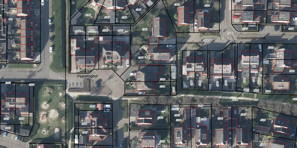 Het perceel waarop Pippelinghof 9 staat heeft een oppervlakte van 335 m². Dit is een groot perceel. De perceeloppervlakte wordt geregistreerd door het Kadaster. Gedetailleerde informatie over de maten van dit perceel kunt u vinden in het rapport Kadastrale kaart met maatvoering van Pippelinghof 9.