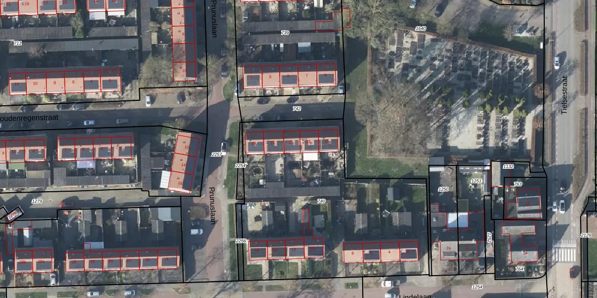 Prunuslaan 15 is gelegen op kadastraal perceel MRK01L740. Deze kadastrale aanduiding is uniek en wordt gebruikt door het Kadaster om eigendomsrechten en andere zakelijke rechten vast te leggen. Het perceel maakt onderdeel uit van de kadastrale gemeente Maurik.