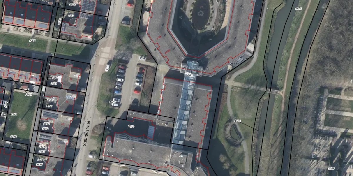 Het perceel waarop Saffatinstraat 40 staat heeft een oppervlakte van 4574 m². Dit is een zeer groot perceel. De perceeloppervlakte wordt geregistreerd door het Kadaster. Gedetailleerde informatie over de maten van dit perceel kunt u vinden in het rapport Kadastrale kaart met maatvoering van Saffatinstraat 40.