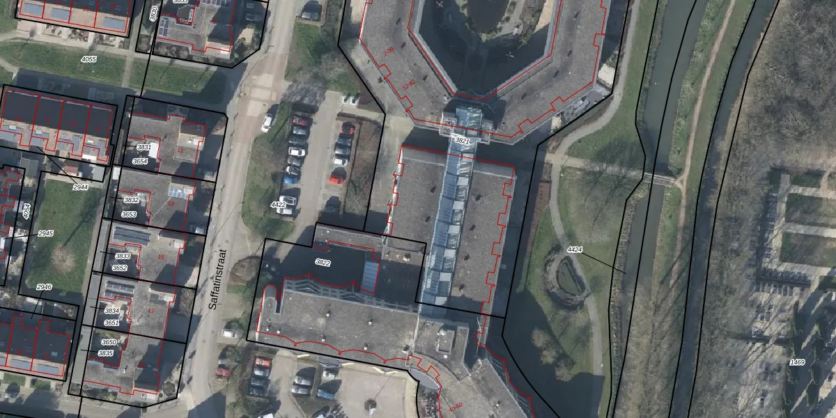 Het perceel waarop Saffatinstraat 46 staat heeft een oppervlakte van 4574 m². Dit is een zeer groot perceel. De perceeloppervlakte wordt geregistreerd door het Kadaster. Gedetailleerde informatie over de maten van dit perceel kunt u vinden in het rapport Kadastrale kaart met maatvoering van Saffatinstraat 46.