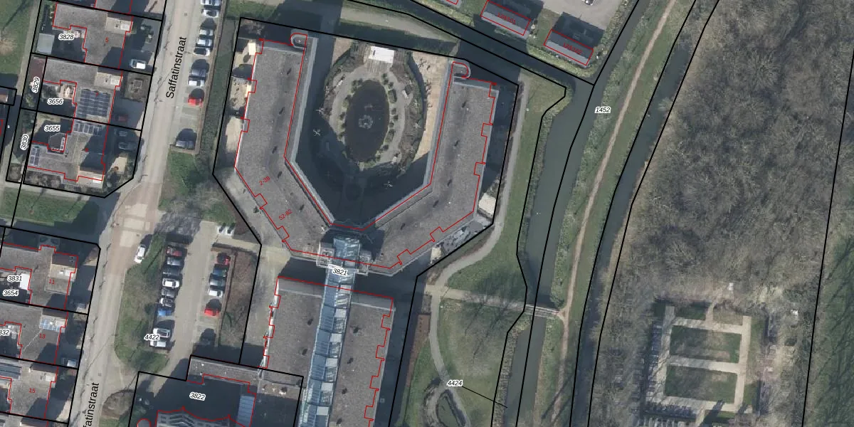 Het perceel waarop Saffatinstraat 64 staat heeft een oppervlakte van 4574 m². Dit is een zeer groot perceel. De perceeloppervlakte wordt geregistreerd door het Kadaster. Gedetailleerde informatie over de maten van dit perceel kunt u vinden in het rapport Kadastrale kaart met maatvoering van Saffatinstraat 64.