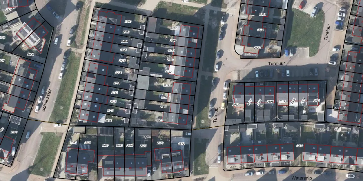 Het perceel waarop Tureluur 30 staat heeft een oppervlakte van 254 m². Dit is een middelgroot perceel. De perceeloppervlakte wordt geregistreerd door het Kadaster. Gedetailleerde informatie over de maten van dit perceel kunt u vinden in het rapport Kadastrale kaart met maatvoering van Tureluur 30.