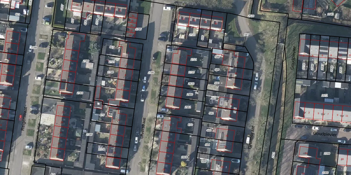 Gebruik de zoekbalk of klik op een perceel voor informatie over de adressen binnen dit perceel.