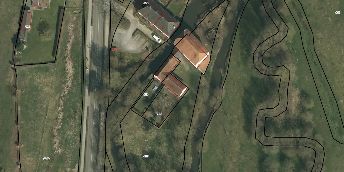 Het adres is gelegen op perceel 409 in de sectie L en de kadastrale gemeente Wittem. De kadastrale aanduiding is aldus WTM00-L-409. De gemiddelde perceelgrootte in Wittem is 6067,55 m². Dit perceel is kleiner: de perceeloppervlakte bedraagt 370 m². De grootste perceeloppervlakte in de kadastrale gemeente is 50,8 ha. De kleinste oppervlakte bedraagt 0 m². Dit is het enige adres dat aanwezig is op het perceel. In de Basisregistratie Kadaster (BRK) werden de grenzen van het perceel geregistreerd op 14-09-2010.