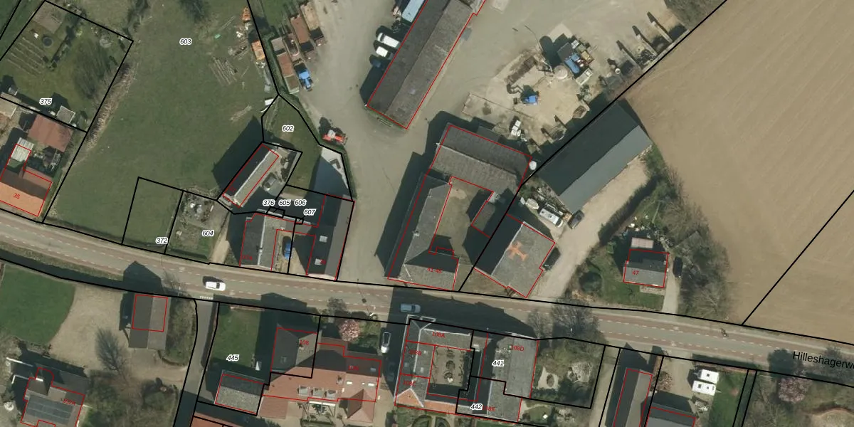 Hilleshagerweg 45 is gelegen op kadastraal perceel WTM00N377. Deze kadastrale aanduiding is uniek en wordt gebruikt door het Kadaster om eigendomsrechten en andere zakelijke rechten vast te leggen. Het perceel maakt onderdeel uit van de kadastrale gemeente Wittem.
