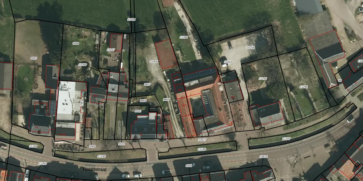 Het perceel waarop Hoofdstraat 28-B staat heeft een oppervlakte van 1265 m². Dit is een zeer groot perceel. De perceeloppervlakte wordt geregistreerd door het Kadaster. Gedetailleerde informatie over de maten van dit perceel kunt u vinden in het rapport Kadastrale kaart met maatvoering van Hoofdstraat 28-B.