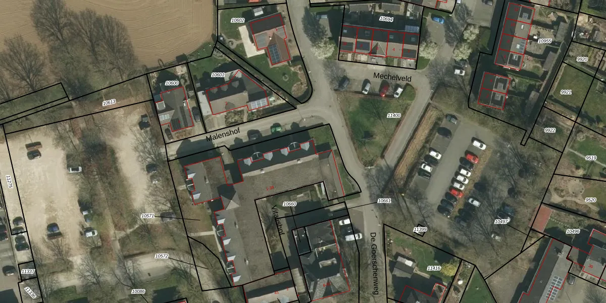 Malenshof 33 is gelegen op kadastraal perceel WTM00C10571. Deze kadastrale aanduiding is uniek en wordt gebruikt door het Kadaster om eigendomsrechten en andere zakelijke rechten vast te leggen. Het perceel maakt onderdeel uit van de kadastrale gemeente Wittem.