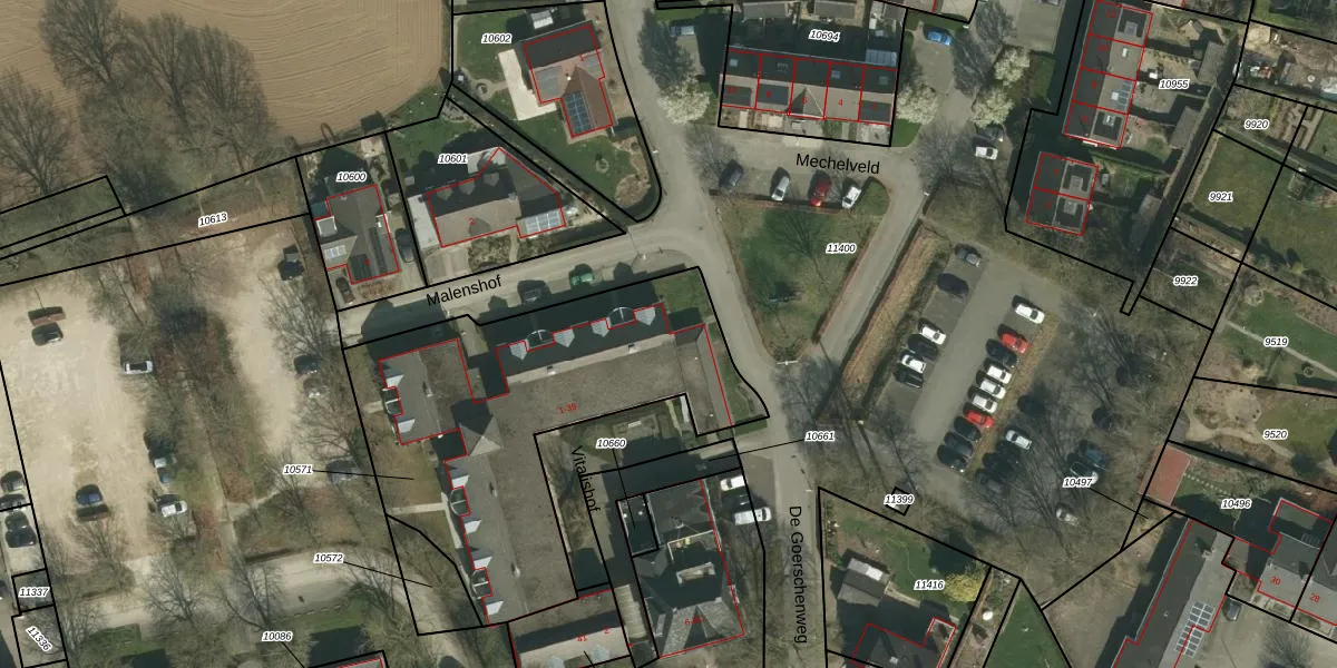 Malenshof 39 is gelegen op kadastraal perceel WTM00C10571. Deze kadastrale aanduiding is uniek en wordt gebruikt door het Kadaster om eigendomsrechten en andere zakelijke rechten vast te leggen. Het perceel maakt onderdeel uit van de kadastrale gemeente Wittem.