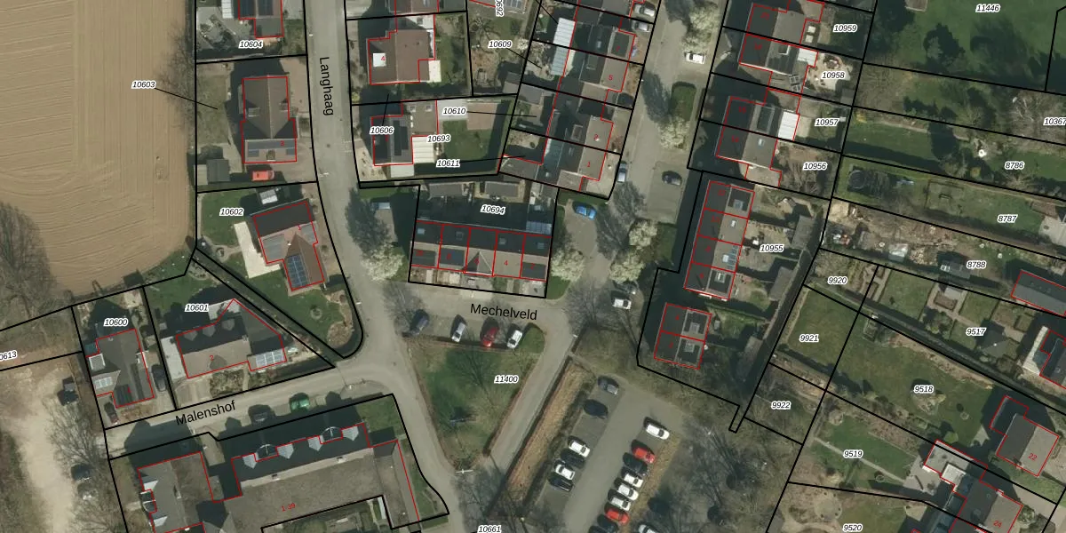 Het perceel waarop Mechelveld 2 staat heeft een oppervlakte van 563 m². Dit is een groot perceel. De perceeloppervlakte wordt geregistreerd door het Kadaster. Gedetailleerde informatie over de maten van dit perceel kunt u vinden in het rapport Kadastrale kaart met maatvoering van Mechelveld 2.