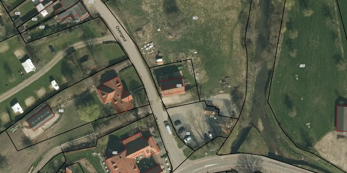 Overgeul 1-B is gelegen op kadastraal perceel WTM00M800. Deze kadastrale aanduiding is uniek en wordt gebruikt door het Kadaster om eigendomsrechten en andere zakelijke rechten vast te leggen. Het perceel maakt onderdeel uit van de kadastrale gemeente Wittem.